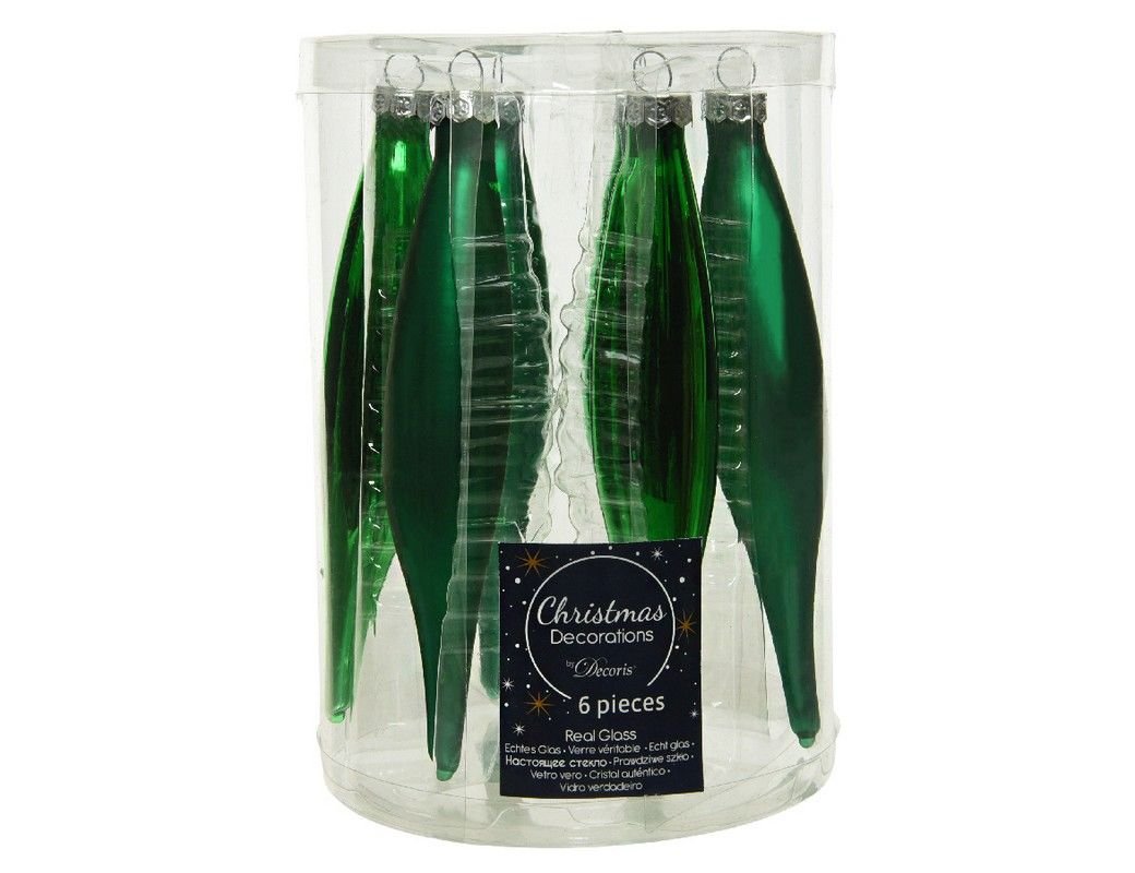 Набор украшений ЭЛЕГАНТНЫЕ СОСУЛЬКИ, классический зелёный, стекло, глянцевые и матовые, 15 см, 6 шт., Kaemingk