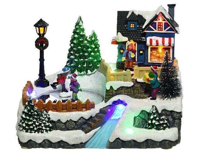 Светодинамическая миниатюра ПРАЗДНИК ВО ДВОРЕ (с катком) с цветными LED-огнями, динамикой и музыкой, полистоун, батарейки, 15x21x16 см, Kaemingk (Lumineo)