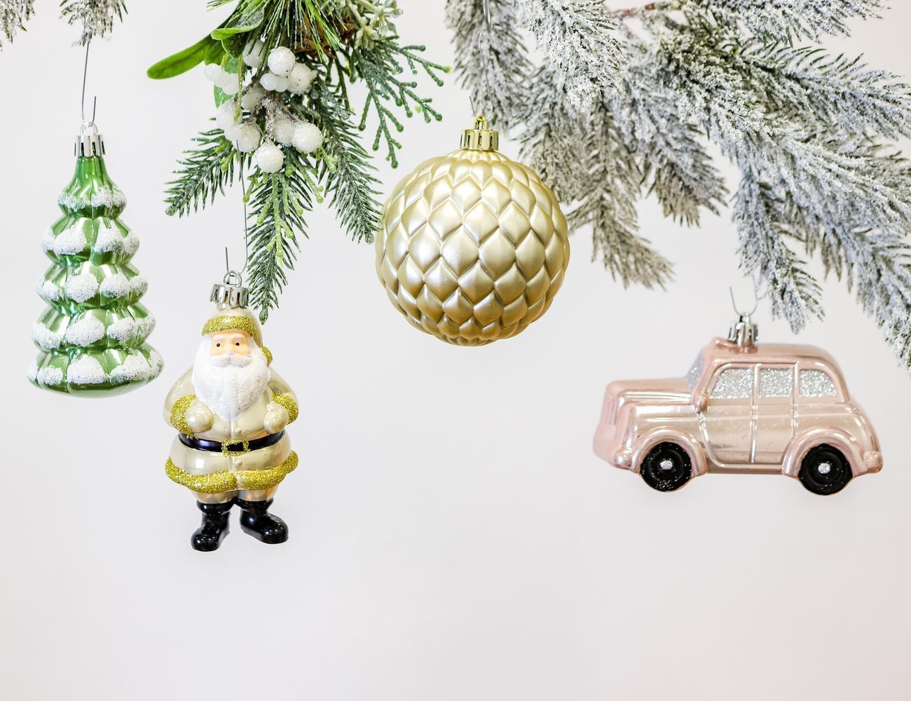 Набор пластиковых ёлочных шаров и игрушек НОВЫЙ ГОД ПРИМЧАЛСЯ! (нежно-розовый с перламутровым и зелёным), 8-12 см, 25 шт, Winter Deco