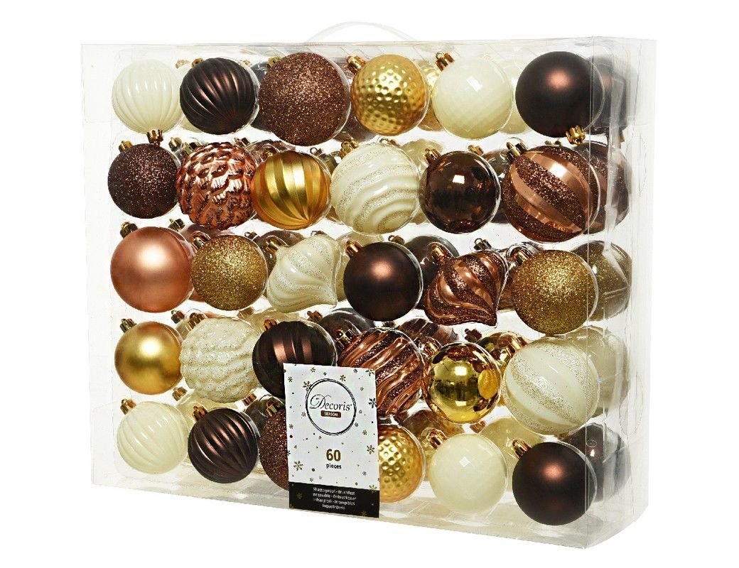 Набор ёлочных шаров из пластика НОВОГОДНИЙ КУТЮРЬЕ, коллекция 'Кофейный десерт', 60-70 мм, упаковка 60 шт., Winter Deco