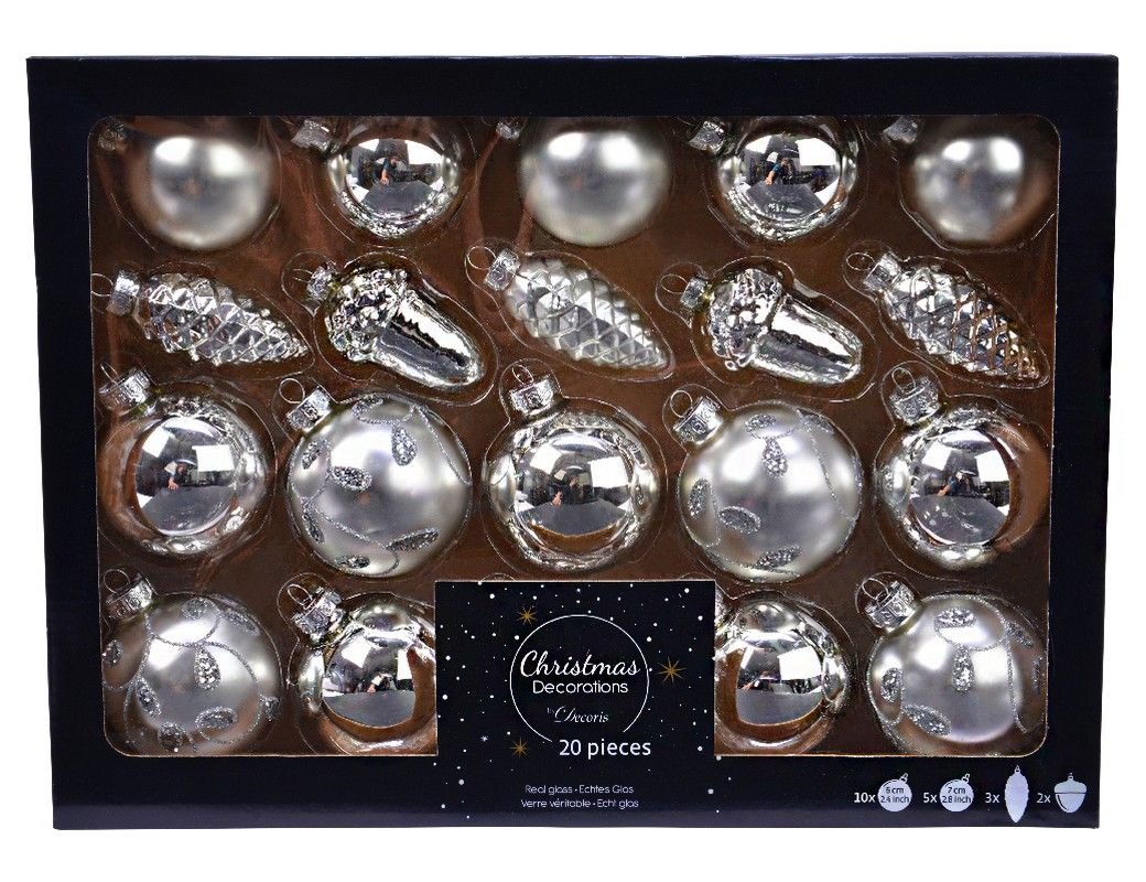 Набор стеклянных ёлочных украшений В ЛУЧШИХ ТРАДИЦИЯХ, серебряный, 6-7 см, 20 шт., Kaemingk