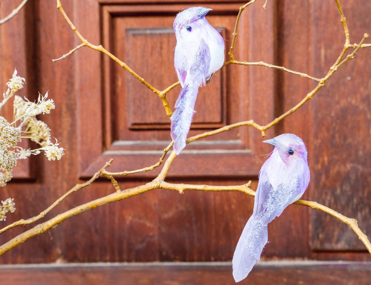 Набор декоративных птичек ПТИЧКИ-НЕЖЕНКИ на клипсе, перо, сиреневый, 16 см, 2 шт., Kaemingk