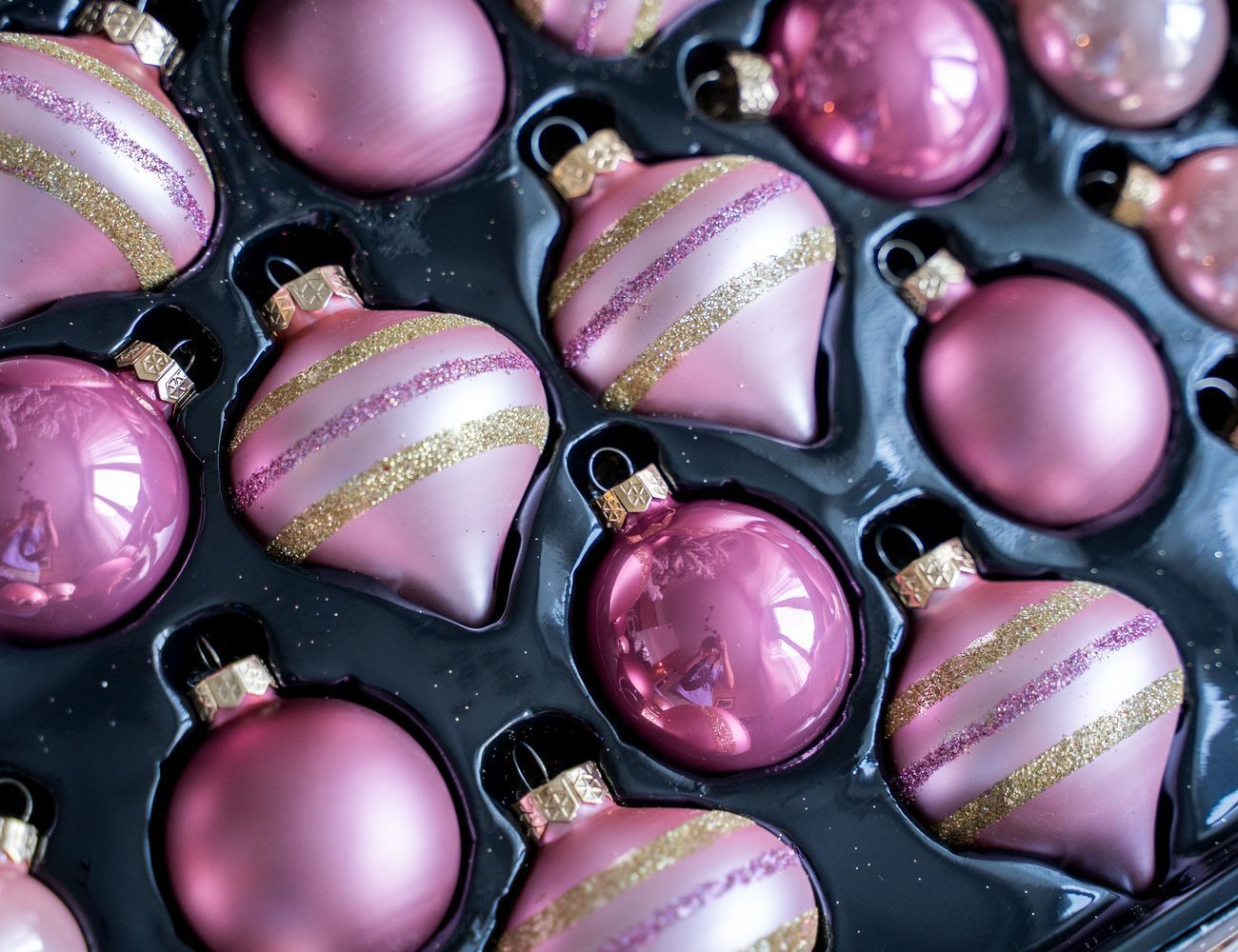 Набор стеклянных украшений для маленькой ёлки МИНИ ЛАКШЕРИ, нежно-розовый, розовый бархат и перламутровый, 4-6 см, упаковка 20 шт., Kaemingk