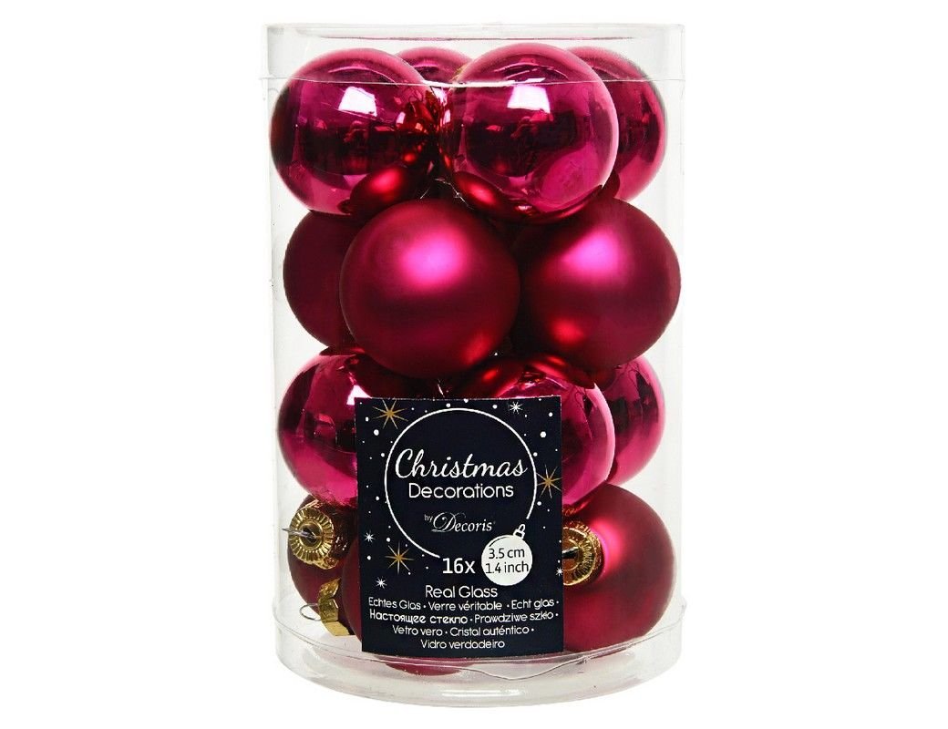 Стеклянные шары ДЕЛЮКС МИНИ матовые и глянцевые, цвет: малиновая фуксия, 35 мм, упаковка 16 шт., Winter Deco
