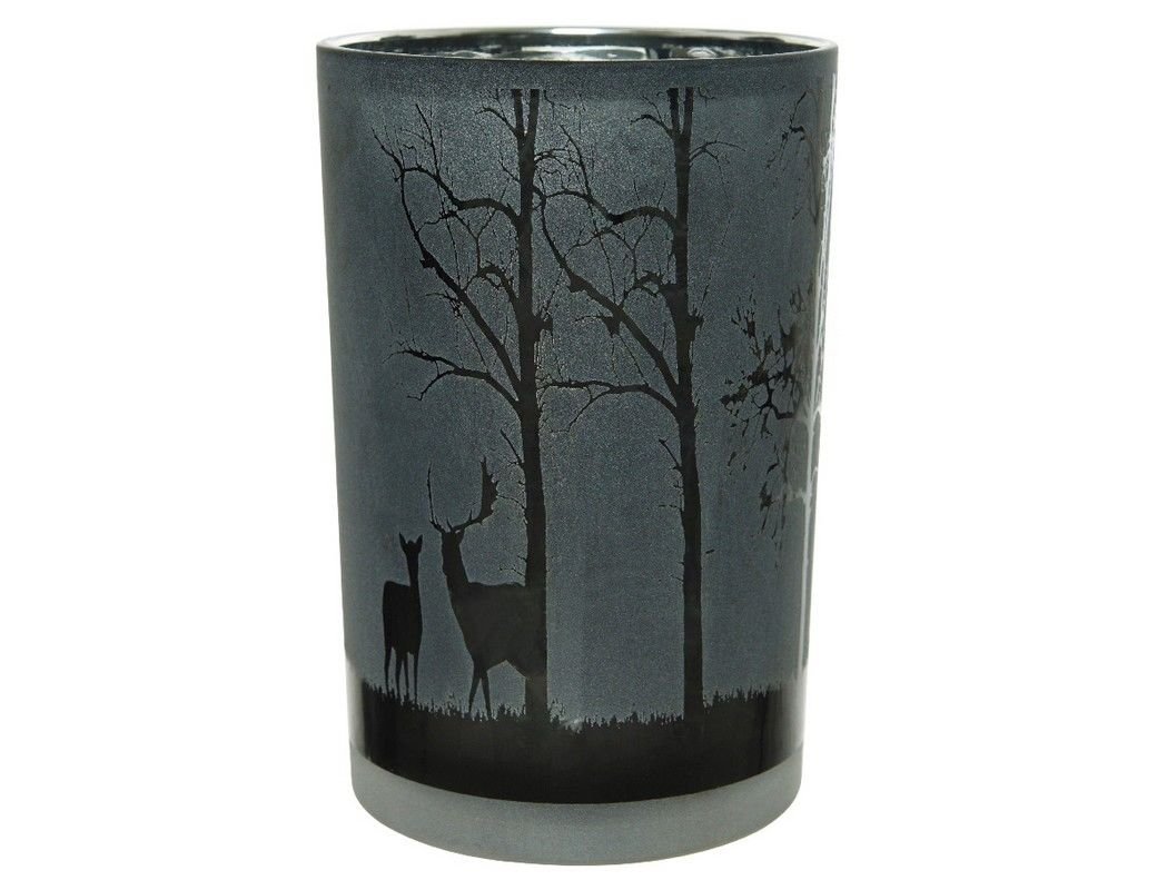 Подсвечник ОЛЕНИ НА ОПУШКЕ, стекло, прозрачный чёрный, 10x12.5 см, Kaemingk