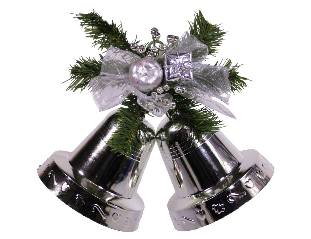 Набор из двух КОЛОКОЛЬЧИКОВ с декором, 12 см, цвет - серебряный, SNOWHOUSE