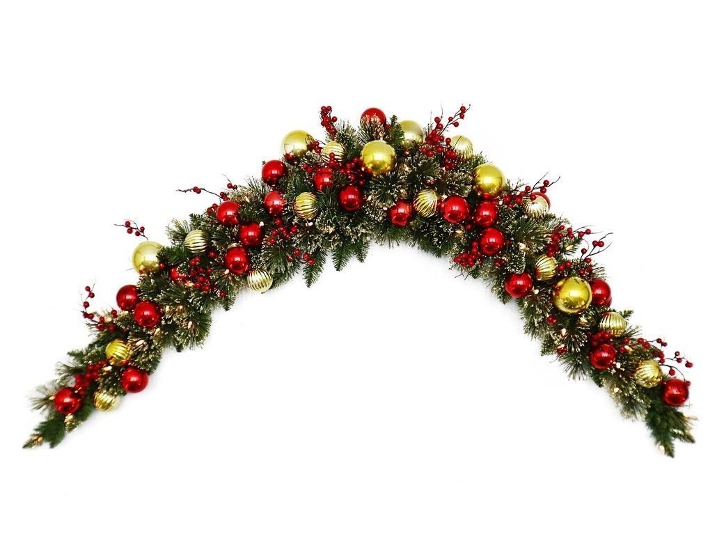 Сваг ДАКОТА с шариками и ягодами, хвоя леска+PVC, 70 тёплых белых LED-огней, 183 см, таймер, батарейки, National Tree Company