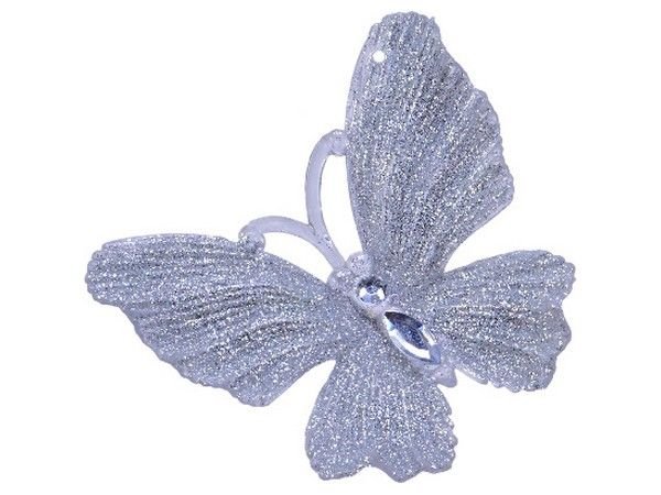 Ёлочная игрушка МОРОЗНАЯ БАБОЧКА, пластик, серебристая, 11x3x10 см, Kaemingk