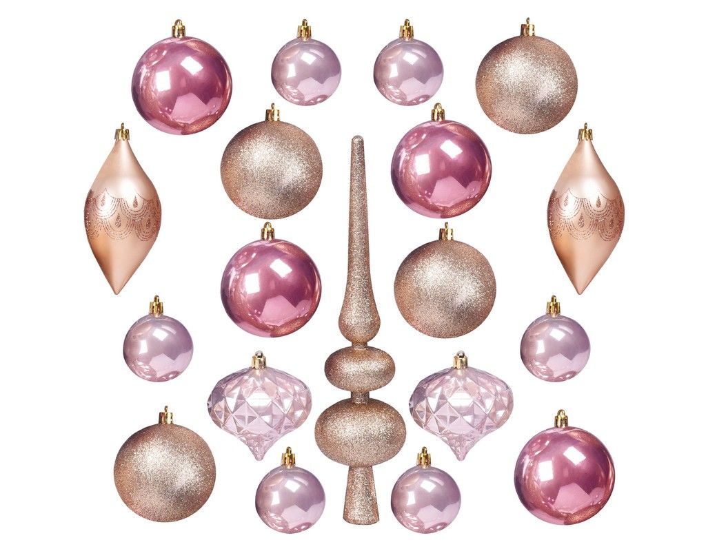 Набор ёлочных украшений БЛЕСТЯЩИЕ ТРАДИЦИИ, пластик, нежно-розовая гамма, 6-13 см, 19 шт., Koopman International