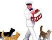 Котики и кошечки знают толк в хорошем молоке, вот потому-то, стоит молочнику пойти разносить своё замечательное молоко горожанам, целая кошачья свита отправляется за ним. И их совершенно не смущает тот факт, что молоко предназначается вовсе не им. Собственно, они считает, что им предназначается все, что им нравится. И, в общем-то, они частенько оказываются правы!