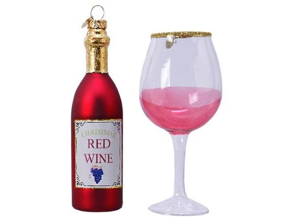 Набор ёлочных игрушек MAGIC RED WINE (бутылочка и бокал), стекло, 12.5 и 13.5 см, Kaemingk