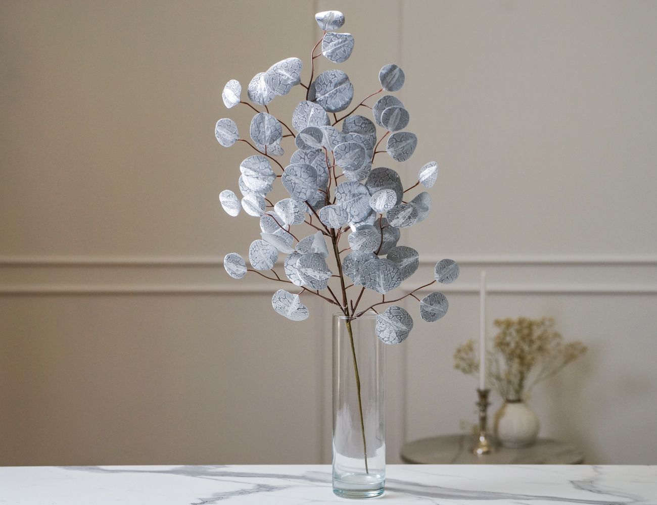 Декоративная ветка МОРОЗНАЯ ЛИСТВА (круглые листья), серебряная, 72 см, Kaemingk