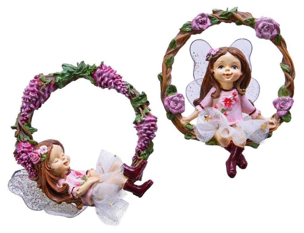 Ёлочная игрушка ВЕНОЧЕК С ДЕВОЧКОЙ-ЭЛЬФОМ (спящей), полистоун, 11.5х12 см, Kaemingk