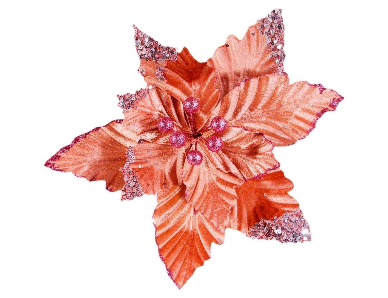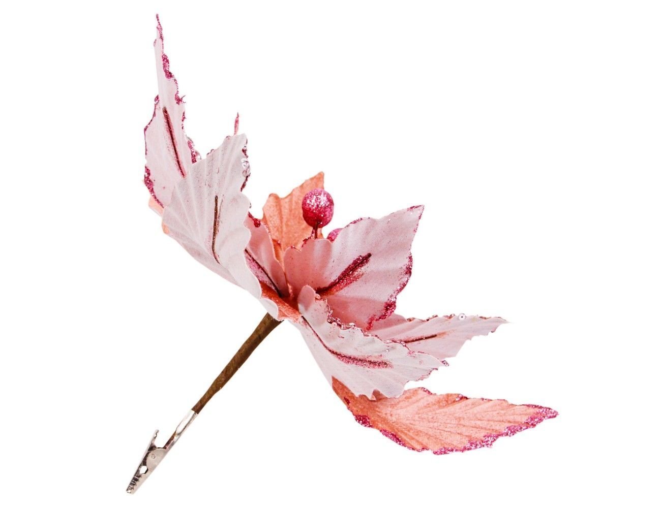 Пуансеттия РЕДЖИНА на клипсе, розовая, 28 см, Due Esse Christmas
