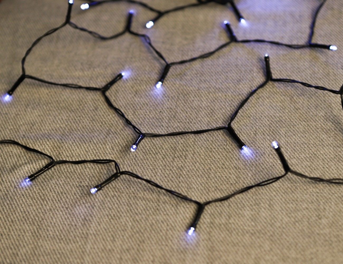Светодиодная гирлянда на батарейках Koopman 7 м, 96 холодных белых LED ламп, черный ПВХ, контроллер, IP44, Koopman International