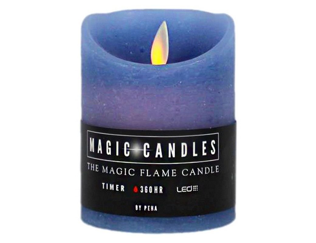 Свеча восковая МЕРЦАЮЩАЯ, голубая, тёплый белый LED-огонь колышущийся, 7.5х10 см, Peha Magic