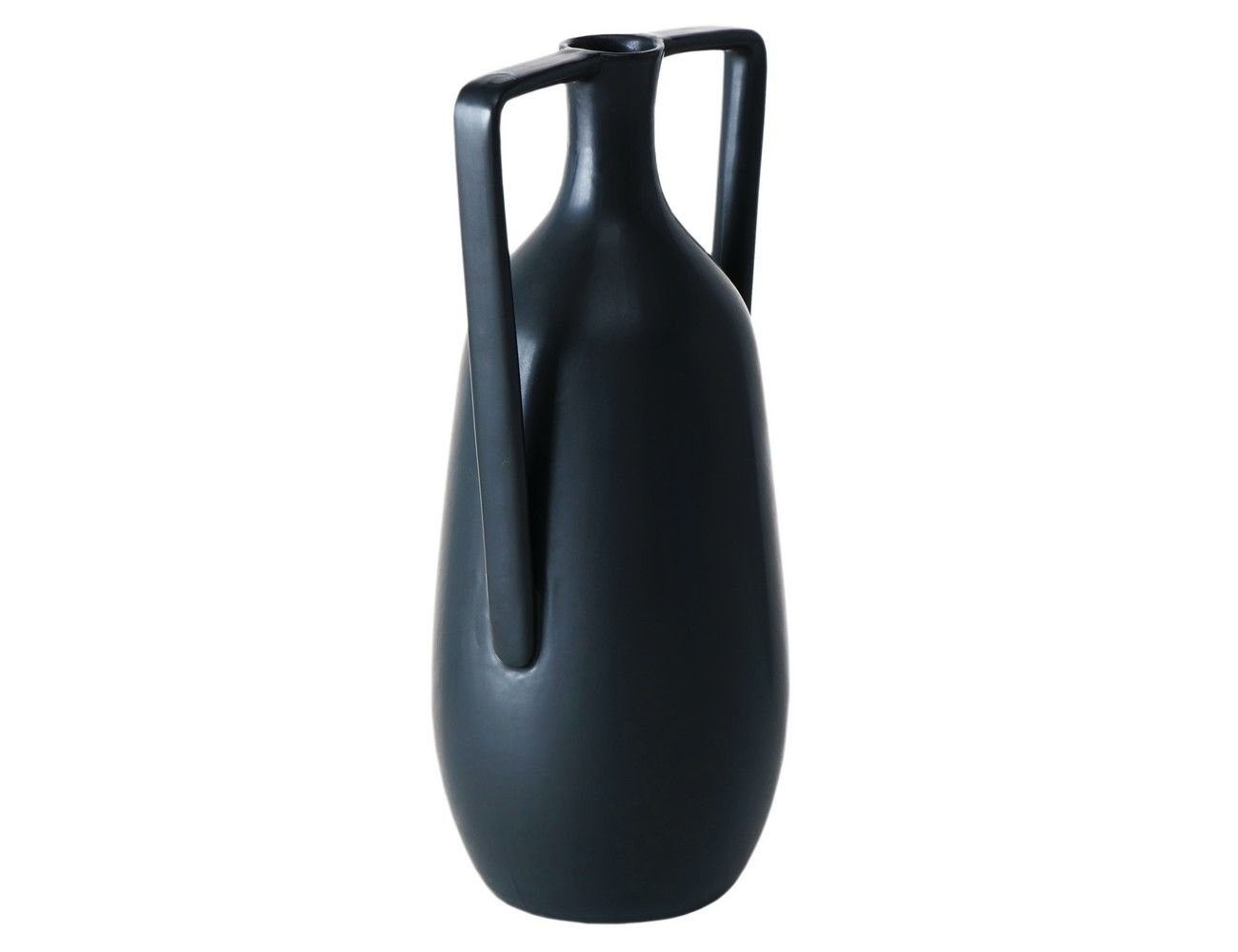 Чёрная керамическая ваза античной формы Boltze МЕЛАКСИЯ, смотрится строго, и слегка экстравагантно, и очень уютно, за счёт мягкой матовой фактуры. Она подойдёт для одного цветка или небольшого букета злаков, которые будут смотреться в ней ярко и привлекательно, благодаря контрасту оттенков.