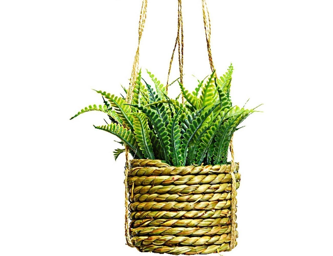 Симпатичное травянистое растение для декора дома, про которое и не скажешь, что оно искусственное, ведь оно такое свежее и так привлекает своим природным обаянием, которое, к тому же очень здорово подчёркивает стильное подвесное кашпо из уютного джута!