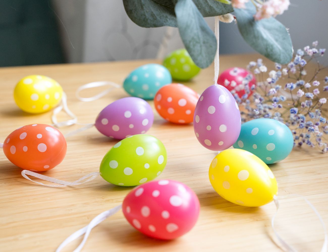 Декоративные пасхальные яйца в уютный горошек согревают настроение своим весёлым обаянием! Они чудесно будут смотреться на весенних веточках и станут яркими, разноцветными бликами в праздничном оформлении!