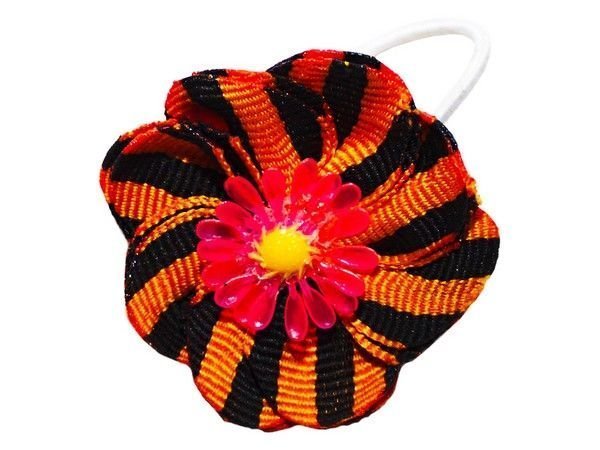 Замечательный аксессуар для на торжественные и праздничные мероприятия 9 мая! Резинка для волос с из георгиевской ленты и нежной маргаритки - это и память о подвигах наших героев ВОВ, и радость жизни сегодня, когда мы можем отмечать этот великий праздник - День Победы!