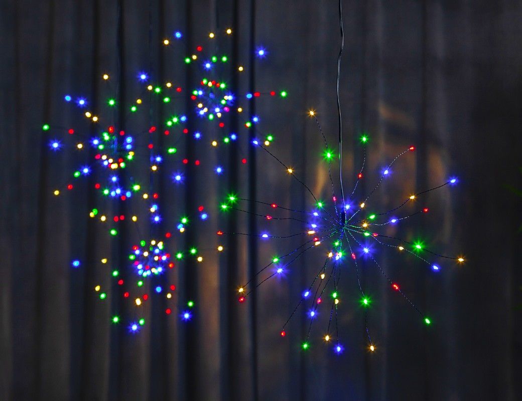 Прелестный светильник FIREWORK (ФЕЙЕРВЕРК) на батарейках с проволочками-лучиками, усыпанными крохотными светодиодами-росинками! Издалека совершенно точно будет казаться что в воздухе завис обаятельный волшебный шар из 60-ти разноцветных светлячков!