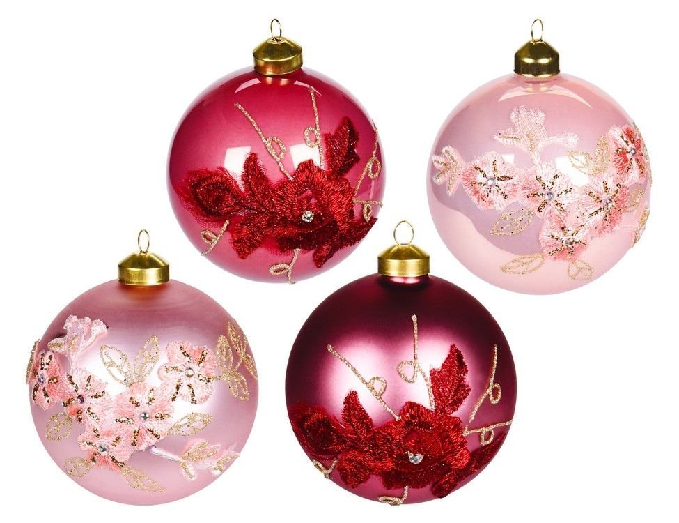 Набор стеклянных ёлочных шаров ROMANCE DE FLEUR, розовые и бургунди, 10 см, 9 шт., Koopman International