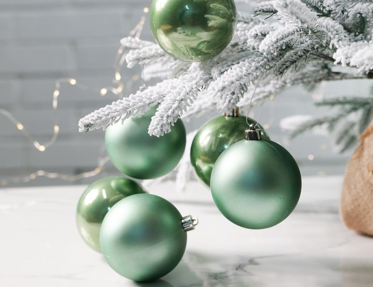 Набор из шести пластиковых глянцевых и матовых шаров изысканного оттенка шалфея идеально подходит для создания базового фона ёлочного наряда!