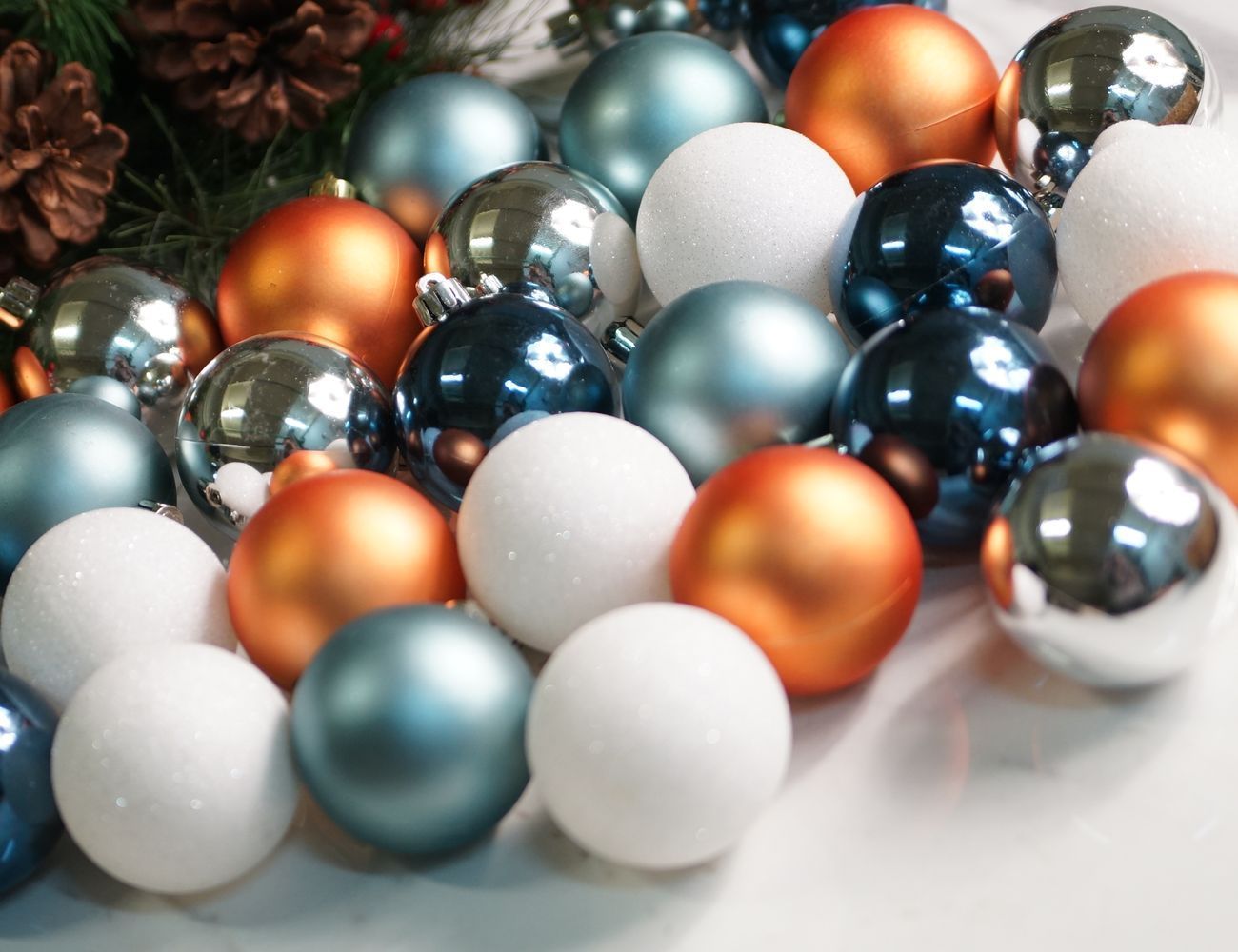 Набор разнофактурных шаров станет оттенков зимнего вечера с тёплыми бликами станет великолепной основой ёлочного наряда!