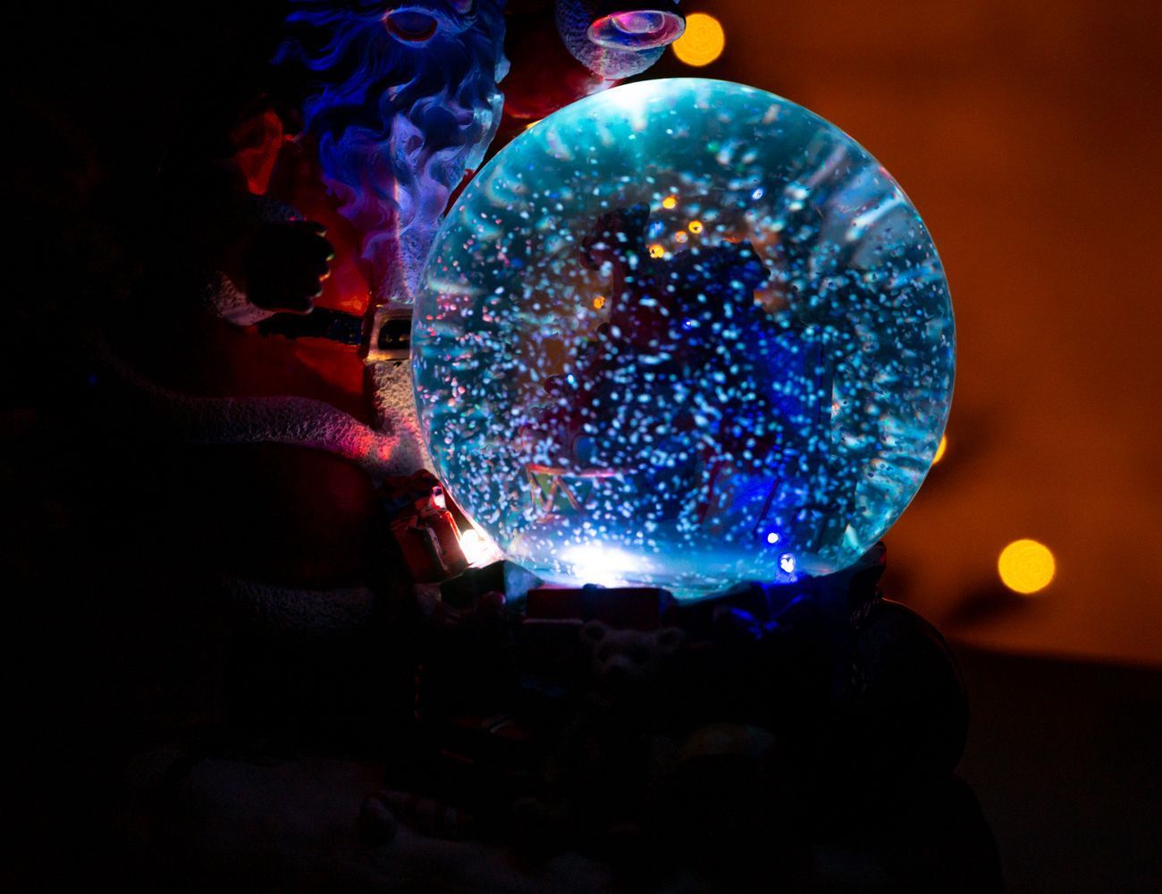 Снежный шар музыкальный ВРЕМЯ САНТЫ (с колокольчиком), 4 меняющих цвета LED-огня, снежный вихрь, 25 см, батарейки, Kaemingk