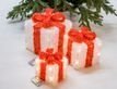 Светящиеся подарочные коробки ТРУА КАДО с алыми бантами, тёплые белые LED-огни, 20-30 см, таймер, батарейки, Kaemingk (Lumineo)