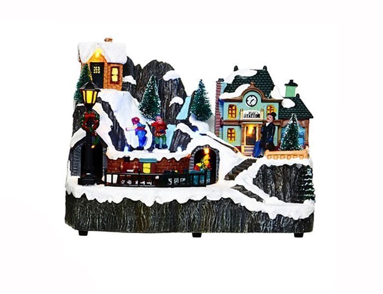 Светодинамическая миниатюра ПРАЗДНИЧНЫЕ ТРАДИЦИИ (с джентльменом на станции) с разноцветными LED-огнями, музыкой и динамикой, полистоун, 22х17 см, батарейки, Kaemingk (Lumineo)