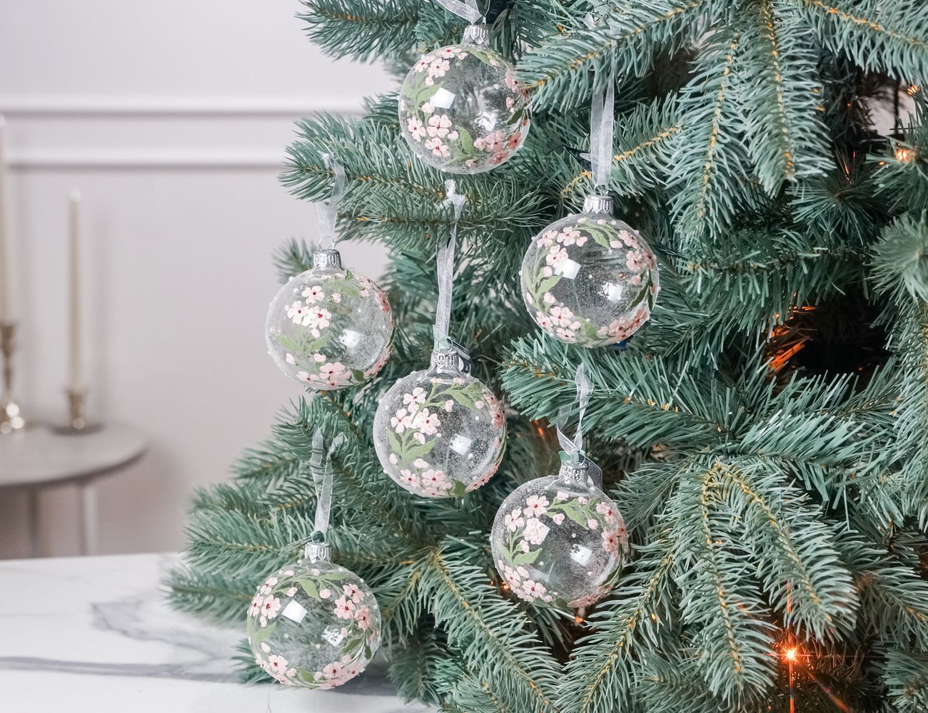 Стеклянные ёлочные шары РОЗОВЫЕ НЕЗАБУДКИ, прозрачные, 8 см, 6 шт., Kaemingk