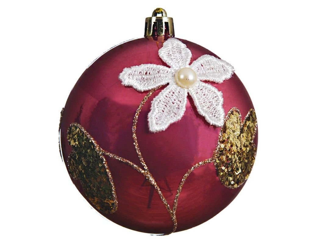 Набор пластиковых шаров ЦВЕТОЧКИ-ЗВЁЗДОЧКИ, розовый бархат, 8 см, 12 шт., Kaemingk