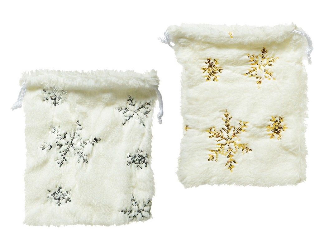 Мешочек для подарков ФЛАФФИ, полиэстер, белый с золотым, 21х17 см, Kaemingk