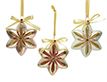 Три звёздочки для красавиц-ёлки - три чудесных перламутрово-глянцевых украшения с разноцветными лучиками и солнечными стразами. Шелковая лента и очаровательный бант - красивое и удобное крепление!