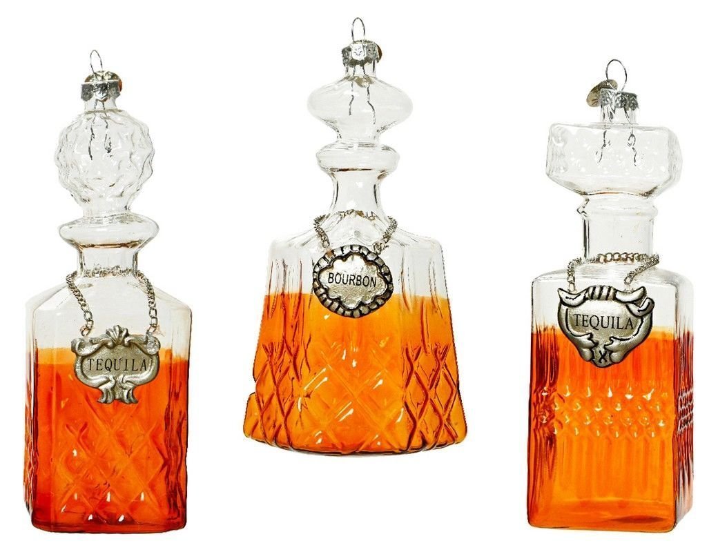 Когда-то было принято подавать напитки к столу не в бутылках, а в хрустальных графинах. Давайте украсим такими графинчиками с благородными напитками новогоднюю ель - в конце концов, это не только традиционно, но и просто красиво!