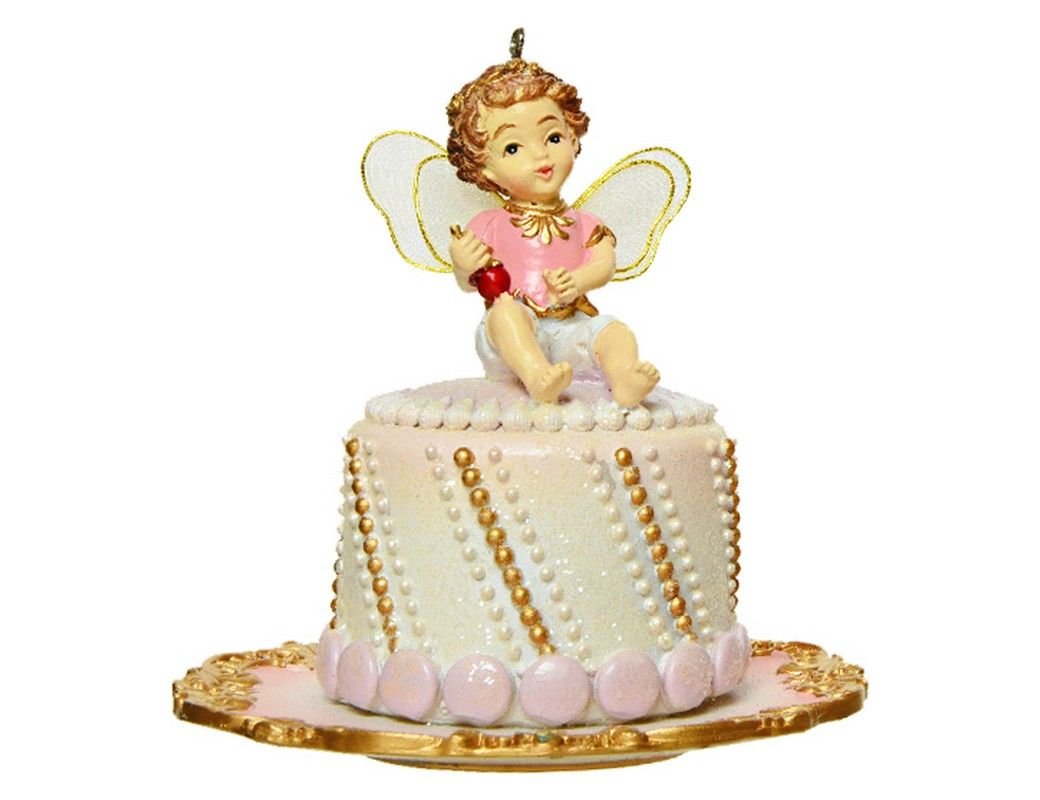 Ёлочная игрушка ЭЛЬФ НА ТОРТЕ с жемчужинами, полистоун, 11 см, Kaemingk