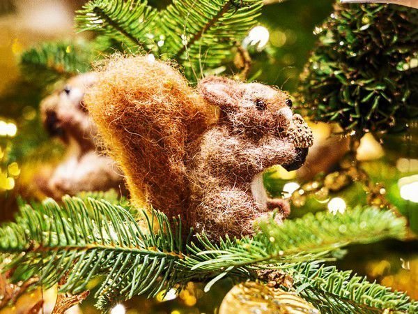 Очаровательный коричневый маленький бельчонок будто только что выбежал из леса и уселся на виду, чтобы мы могли полюбоваться его шерстяной шубкой, пушистым хвостиком и посмотреть, как он будет добывать любимое лакомство - семена сосновой шишки. Мягкий и тёплый, выполненный из валяной шерсти, этот малыш под праздничной ёлочкой станет настоящим персонажем сказки 'О царе Салтане'!