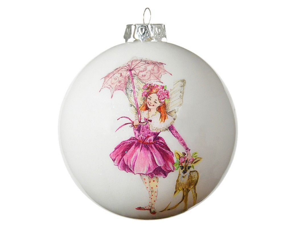 Ёлочный шар папье-маше ЛЮБИМАЯ СКАЗКА (Фея с Оленёнком), 8 см, Kaemingk