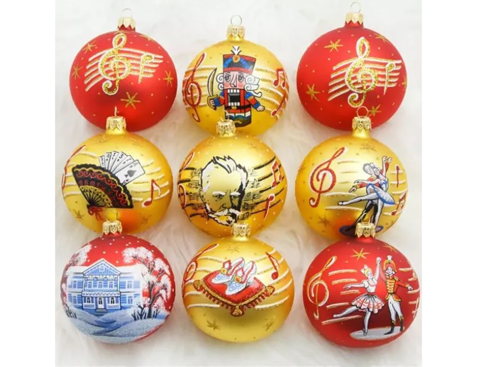 Набор из девяти стеклянных шаров с ручной росписью, выпущенный к юбилею П.И.Чайковского (лимитированная коллекция).