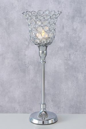 Подсвечник-бокал СЕРЕБРЯНЫЙ ЛЕС под чайную свечу, стеклянный, 20 см, Edelman