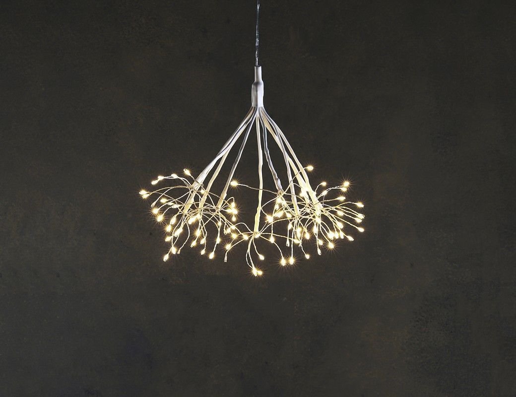 Волшебный мерцающий Фейерверк из 100 тёплых белых огней-росинок для декоративной подсветки дома и сада! Тонкие серебристые лучи-проволочи легко сгибаются, придавая светящемуся украшению форму экстравагантного шара, либо искрящегося букета, или даже воздушного одуванчика! Яркие крошки звёздочки, сияющие на его лучах, делают вечера волшебными и романтичными в любом сезоне, и в праздники, и в будни!
