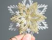 Словно распустившаяся нежная хризантема, эта снежинка украсилась рядами трепетных лепестков - настоящий, мерцающий золотыми и серебряными искрами, зимний цветок!