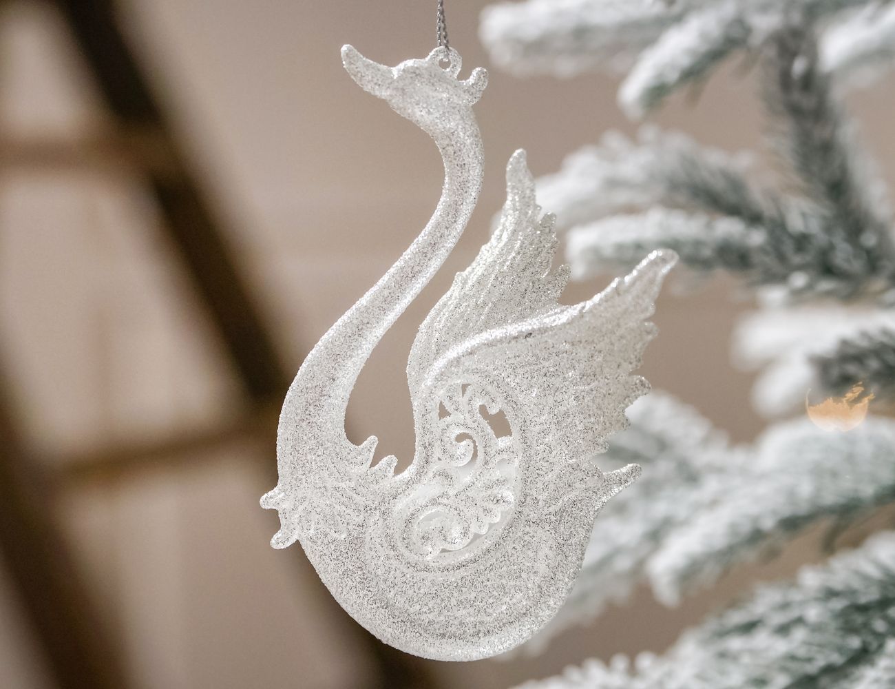Ёлочная игрушка из акрила СНЕЖНЫЙ ЛЕБЕДЬ, шампань, 13 см, разные модели, Forest Market