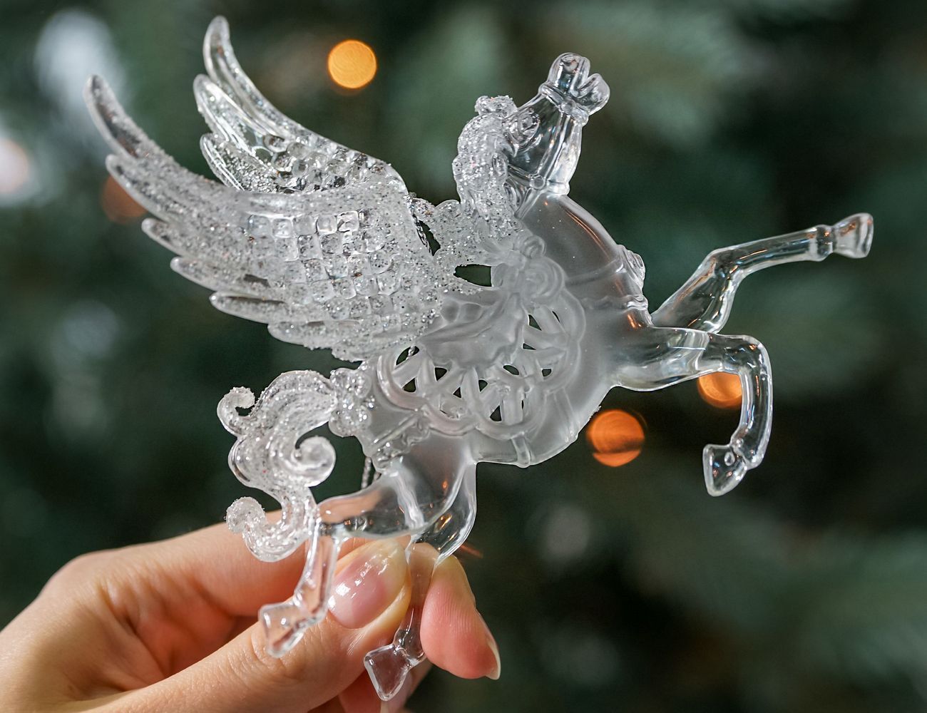 Ёлочная игрушка из акрила ЛЕТЯЩИЙ ПЕГАС, прозрачный с серебряным глиттером, 14 см, Forest Market