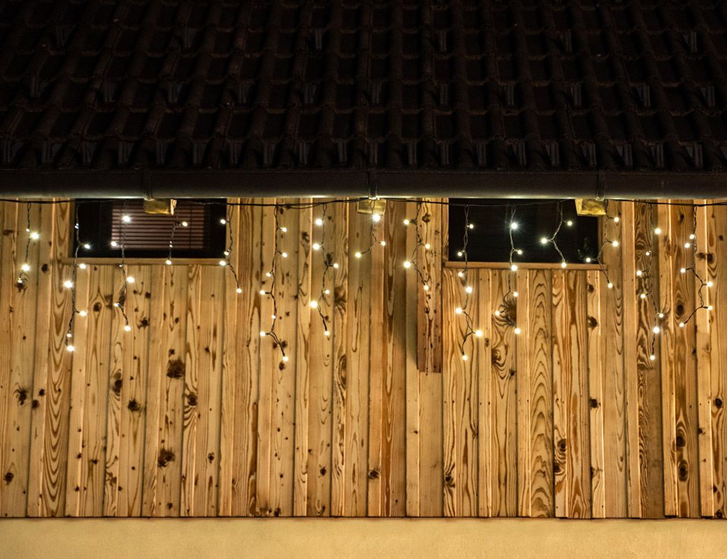 Иллюминация этой гирляндой выглядит очень эффектно. Великолепно смотрится под карнизами здания. Сверкающие 'сосульки', натянутые между домами, в вечернее время необыкновенно эффектно освещают улицы.