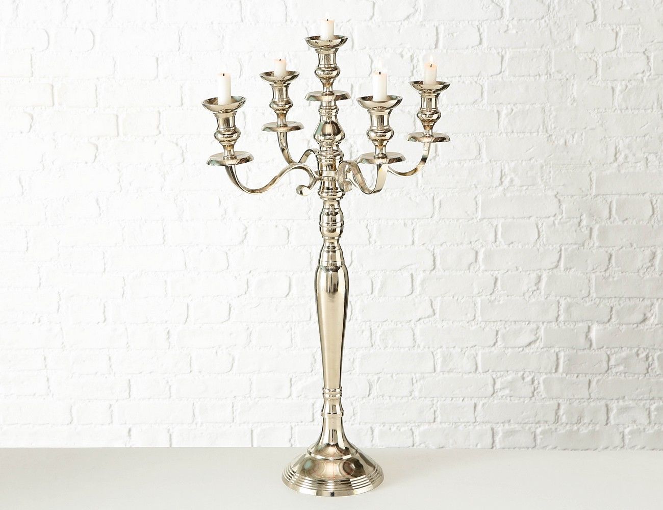 Высокий канделябр ВИТТОРИО под 5 свечей, алюминий, серебряный, 78 см, Boltze