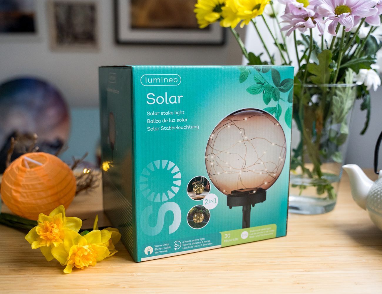 Садовый светильник Solar PALLA MAGICA на солнечной батарее малый, янтарный, тёплые белые микро LED-огни, 28х20 см, Kaemingk (Lumineo)