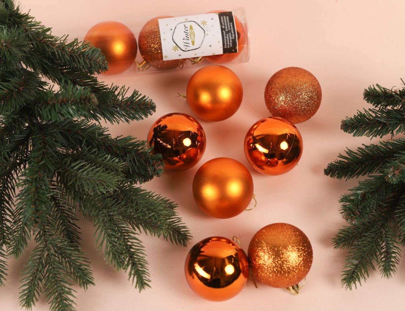 Набор однотонных пластиковых шаров, МИКС, оранжевые, 60 мм, упаковка 10 шт., Winter Deco