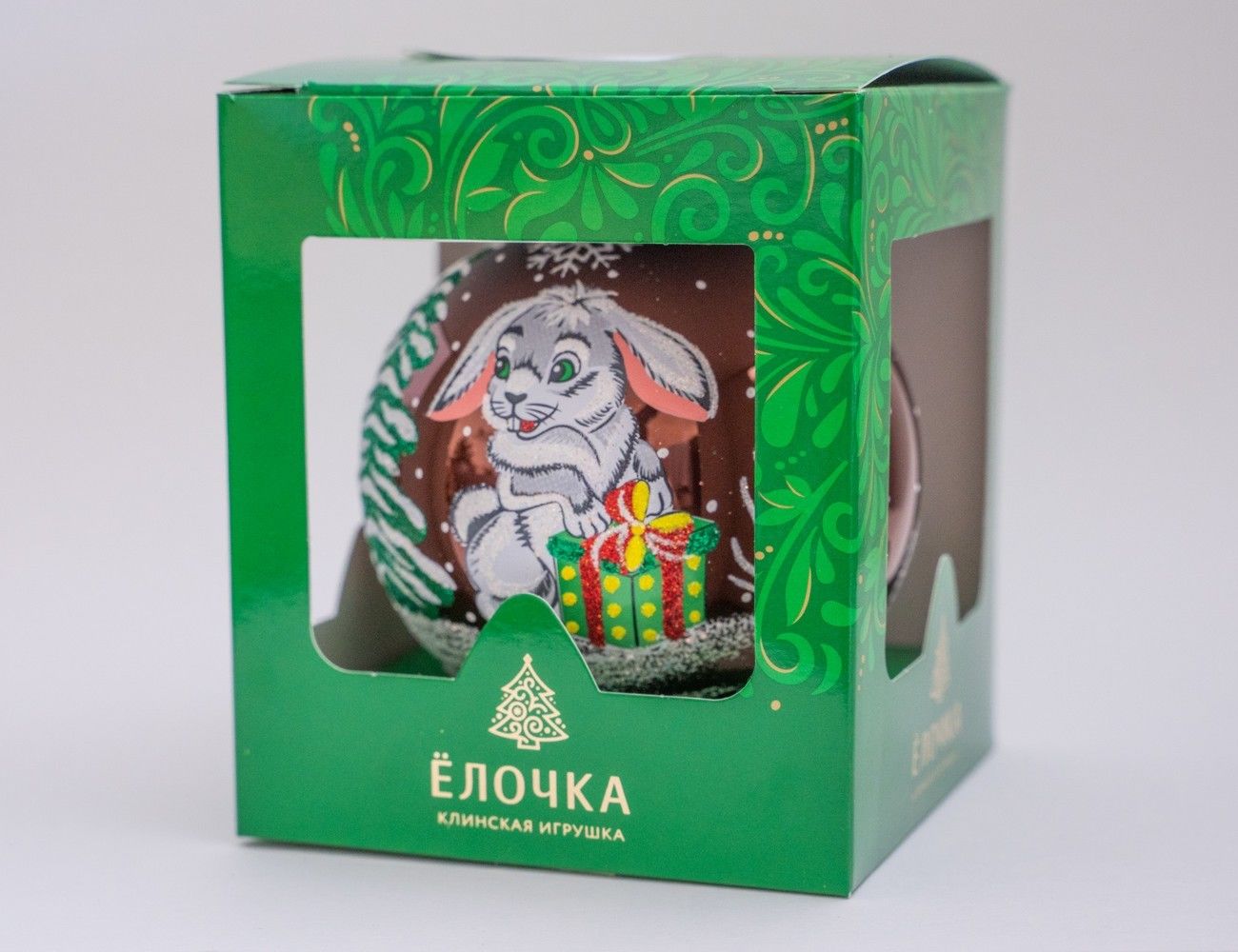 Как же здорово, что под самый Новый год к вам наведается этот замечательно улыбчивый Заяц с сюрпризом, который он заботливо упаковал в нарядную к>робку! А вот, что за сюрприз - мы не знаем, только Заяц знает, но пока молчит, чтобы сохранить интригу! Впрочем, можно не сомневаться, что сюрприз вас порадует, ведь символа года всегда дарят очень хорошие и ценные подарки!Новогодний шар из стекла с ручной росписью.